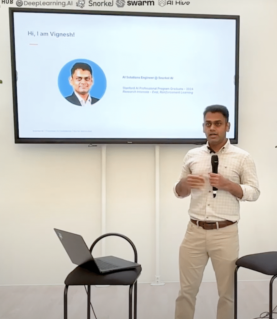 Through his writing and his talks at leading events in London, Vignesh has become recognised as one of the foremost voices in RL training, distilling complex ideas into approachable insights. He explains RL through a simple analogy: “Imagine animals in a lab setting, where good behaviour earns rewards and mistakes bring penalties—except here, the ‘animal’ is an AI model learning how to make better decisions with every attempt.”